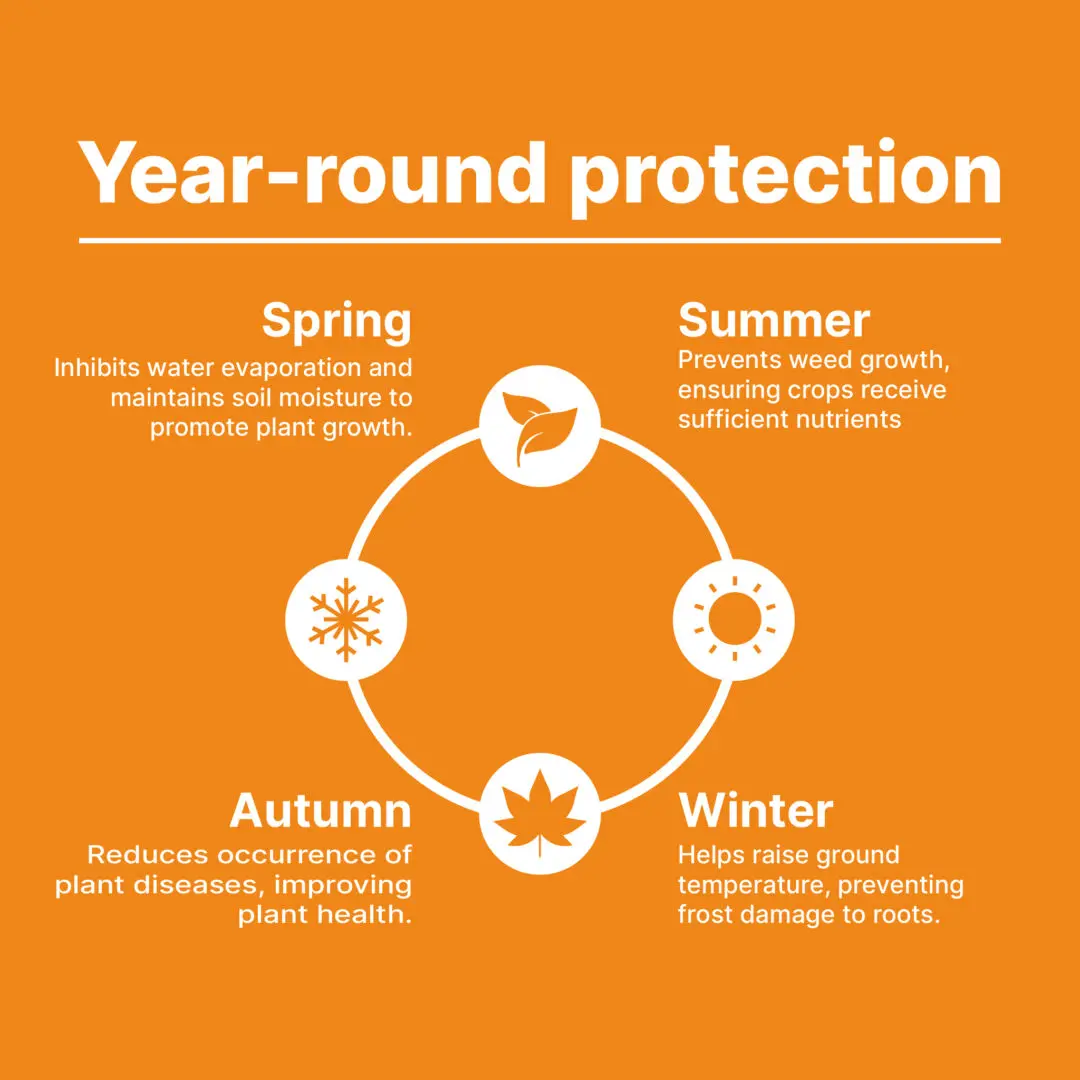 🌱 Printemps : retient l'humidité et empêche l'évaporation rapide, favorisant ainsi une croissance vigoureuse des plantes.